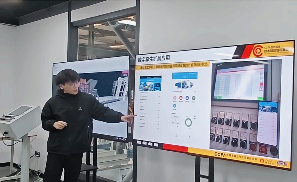 प्रशिक्षण साइटवर, सहभागींनी डिजिटल ट्विन सिस्टमद्वारे, कच्च्या मटेरियल मिसळण्यापासून तयार उत्पादन क्युरीपर्यंत, नॉन-उधळलेल्या विटांच्या मशीनसाठी डिजिटल नियंत्रणाच्या संपूर्ण प्रक्रियेची अंतर्ज्ञानी समज प्राप्त केली. सिस्टम रिअल-टाइम उत्पादन डेटा संकलित करते, मोल्ड वेअर, हायड्रॉलिक सिस्टम स्थिती आणि इतर उपकरणे ऑपरेटिंग शर्तींचे अचूक अंदाज सक्षम करते. प्रशिक्षकांनी ब्लॉक उत्पादनासाठी मुख्य मशीन पॅरामीटर्सचे तपशीलवार स्पष्टीकरण प्रदान केले आणि या प्रात्यक्षिकेसह हे पूरक केले, ज्यामुळे सहभागींना सिद्धांत आणि सराव यांच्या संयोजनाद्वारे द्रुतगतीने कोर कौशल्ये मिळू शकतील.